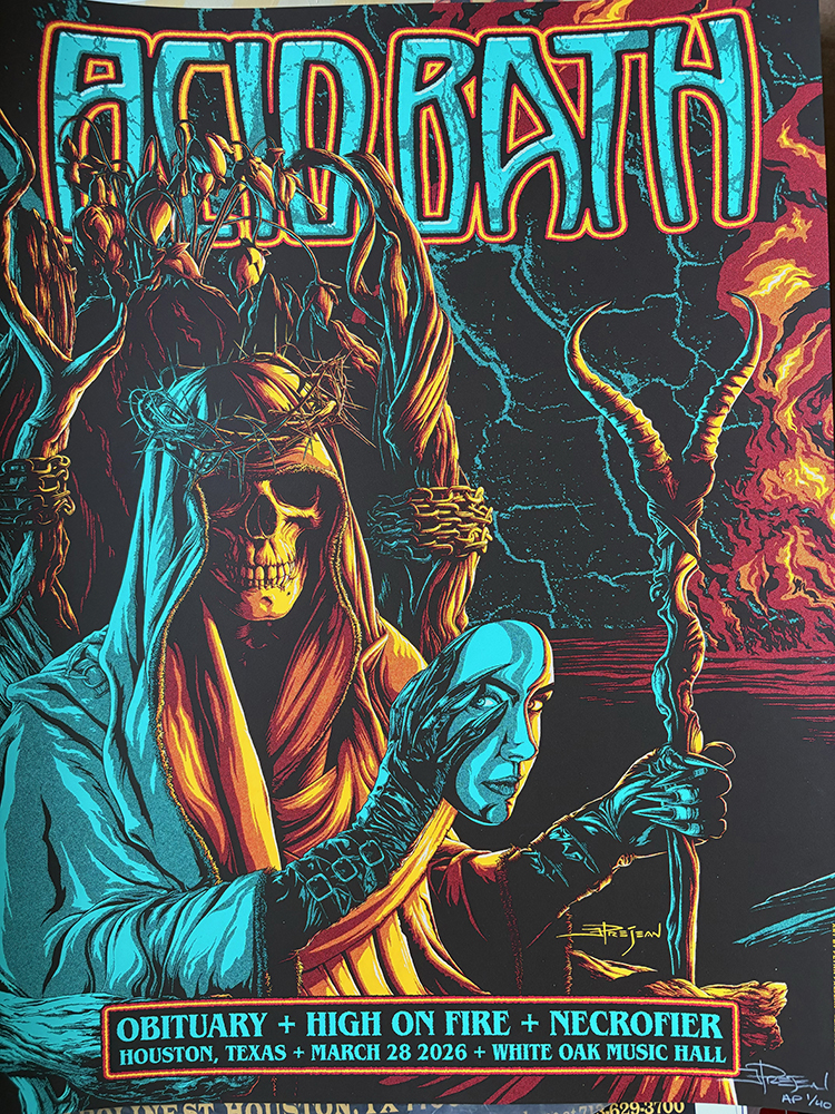 Acid Bath$45.00 Acid Bath quantity Add to cart Category: Gigposters Description Additional information Description 18″ x 24″ 4-Color silkscreen. Limited APs Additional information Weight 1.2 lbs Dimensions 24 × 3 × 3 in Related products GigpostersAnvil $20.00 Add to cart Out of stockGigpostersPuddle of Mudd 1 – SOLD OUT $25.00 Read more Out of stockGigpostersMisfits B&W – Sold Out $25.00 Read more